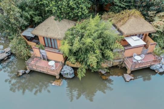 河源栖暖.禧悦庄美宿位于河源市客天下国际旅游度假区内,该项目为5000亩的4A级度假休闲小镇,景区内的温泉是广东省首批省级认证的真温泉。而“栖暖.禧悦庄美宿”每栋别墅均带有私属的温泉泡池,稀有氡温泉直接从地下原浆入户。“栖暖.禧悦庄美宿”位于度假小镇中心的“心”型小岛上,民宿四周湖水环绕,园林面积约占85%以上,俯瞰下来就像森林里的隐秘小居,融入于大自然当中,与生态环境融为一体。房间内部融入了东南亚的设计风格,加上泡池位置的帐帘、蜡烛和室外森林般的大自然感觉,随手一拍都是满满的网红风。广东省生态环境厅通报的《年度全省环境保护责任考核结果》,至2019年初,河源市仍是广东一个没有酸雨的地级市,省环保责任考核获“4连优”,生态资源如此丰富的地方,往往让人沉醉于它的自然之美。河源客天下国际旅游度假区有接近10亿的旅游配套,丰富的度假旅游产品,动静相宜,是情侣、闺蜜或家庭出游的理想之地。“恐龙欢乐水世界”,“冰雪乐园”,“原生态水晶氡温泉区”,“悠乐园”,“水晶玻璃桥”,“丛林探险乐园”,“研学拓展基地”等等,是您一站式休闲度假旅游目的地。