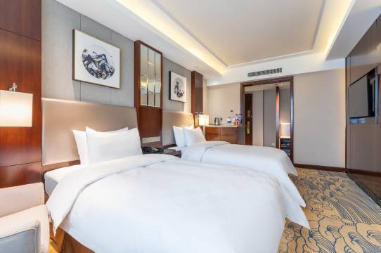 整体很满意,酒店设施很齐全,健身房里面的器材也很多,洗衣房也很不错,洗好衣服服务员还会帮送至房间,点赞👍房间床品很舒适,我们休息的也很好。酒店的位置距离高速口很近,下高速就到了,环境还不错,尤其是晚上俯瞰整个酒店,亮化太棒了👍酒店停车也很方便。前台的服务更是没得说,全程都是微笑着服务,办理入住也很快,退房还送了水果和咸鸭蛋,还有温的矿泉水,是个很满意的住宿体验,下次过来一定还会选择这个酒店。