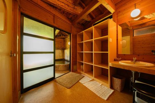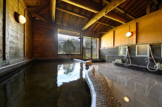 民宿离由布院站走路15分钟左右 跟着导航很好找 订的是LOFT房型 房间在二楼 两边都有大的窗 一面对着民宿的花园 一面对着田园 景色很美 工作人员热情周到 介绍了民宿的情况还帮我们约了泡汤 这个是属于家族私汤 一个小时独家享用250日元一位 很赞