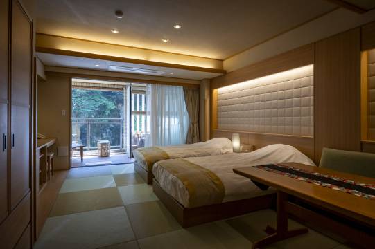 所有客房面向溪流,可在工作人员手工打造的露天风吕放松,享用每月更换菜单的时令料理。 null