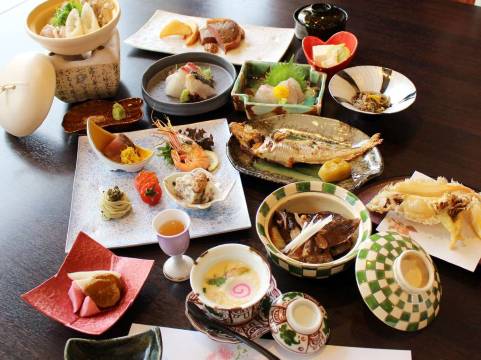 本馆提供的晚餐,客人口碑极佳。周边环绕着大海与鸟海山,大自然非常丰富,可享受发自内心的轻松、悠闲的度假时光。本馆的天然温泉,被誉为“美人之汤”。泡温泉时,还可眺望夕阳美景。 null