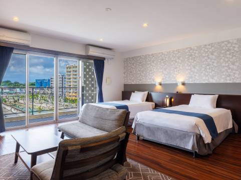 位在美国村较外环的位置,走进美国村约 5 ~ 10 分钟,但晚餐想安排琉球的牛北谷店的话就在餐厅旁边,饭店有停车位但不确定旺季是不是足够,房间干湿分离且有浴缸,流理台非常大很方便,但没有什么公共设施就是一个落脚睡觉的地方