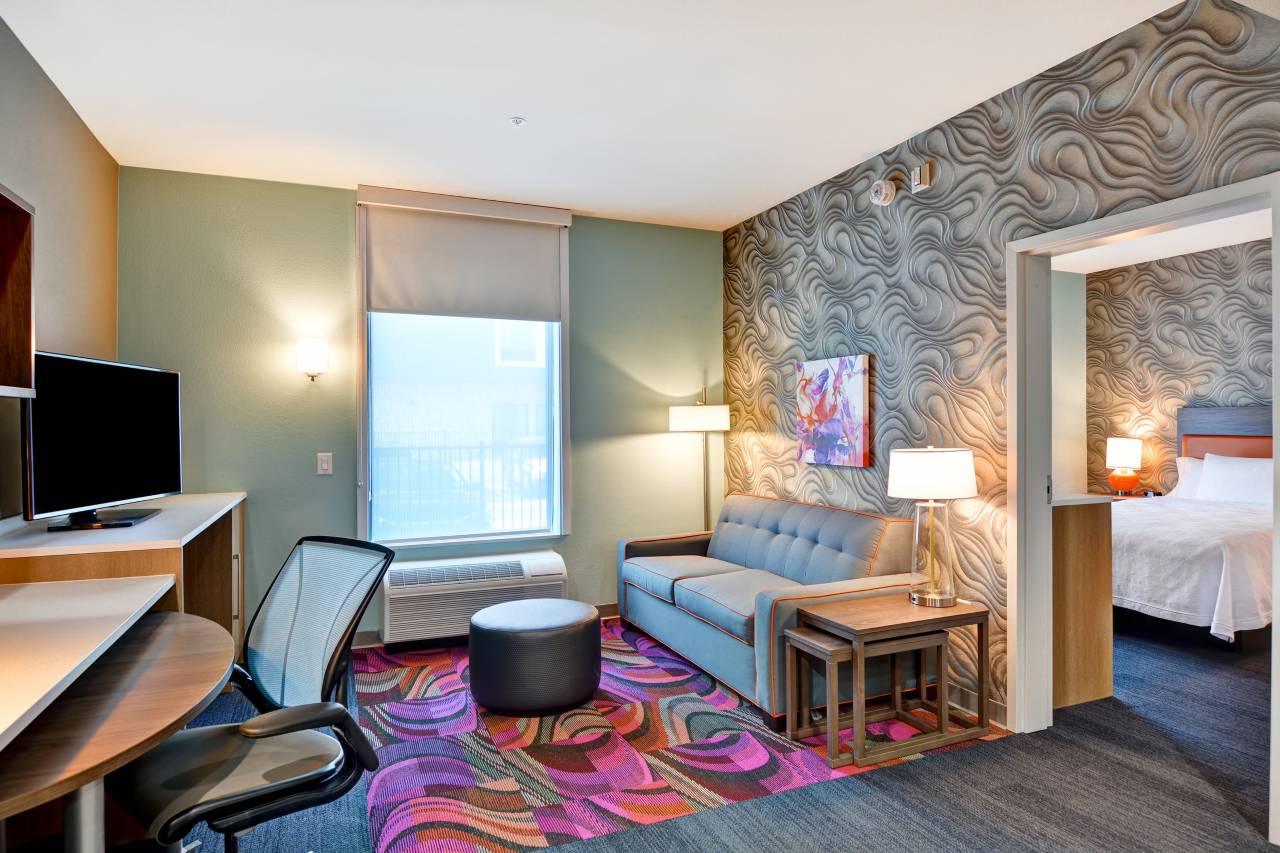 有 107 间客房提供备有大冰箱和微波炉的简易厨房;您定能在旅途中找到家的舒适。免费提供有线和无线上网,此外,42 英寸平板电视提供有线频道,可满足您的娱乐需求。便利设施包括保险箱和书桌,以及带有免费市内通话的电话。