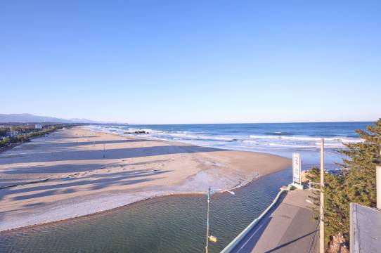 离海滩很近,离生鱼片店也很近,离炸**也很近,