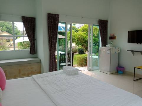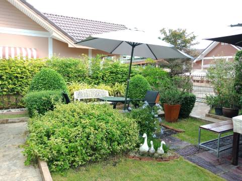 可爱的小屋坐落在宁静的绿意盎然的花园里,房间宽敞明亮。很喜欢。