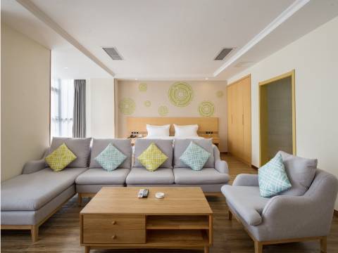 酒店拥有客房产品包含,高级大床房,配置零压床垫,全景落地窗,视野极其舒适;商务大床房,配置1.8m舒适床垫,软硬适中,符合人体工程学;家庭房,配置子母床各一张,并配置儿童洗漱用品,亲子无忧;商务双床房,配置1.35m超宽床垫两张,畅享睡眠;