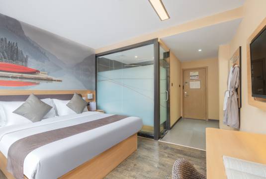 房间很大还是干湿分区的,还有电梯,一路上都没有住上几个有电梯的酒店看见有电梯简直是狂喜了,简直就是物美价廉,老板人超级好一直给我们讲攻略🫡,服务也非常的贴心哦,非常好的一次住宿体验!!!