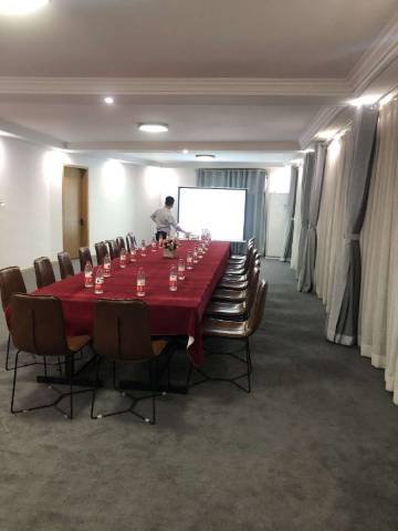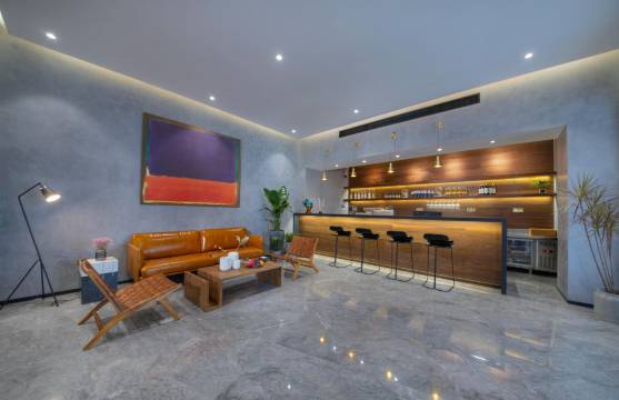 酒店傍水而建,以北欧工业风格为主,总建筑面积1300平方米,拥有客房十余间,餐饮包厢4间,酒店三楼配有20人会议室,可用于团建或一般会议。
