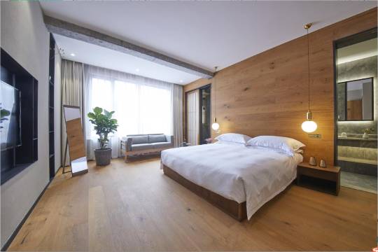 客房均配有网络电视,智能马桶。部分房间配有浴缸和专用电视,配有迷你冰箱,带湖景阳台。房间设计依然是北欧工业风为主题。