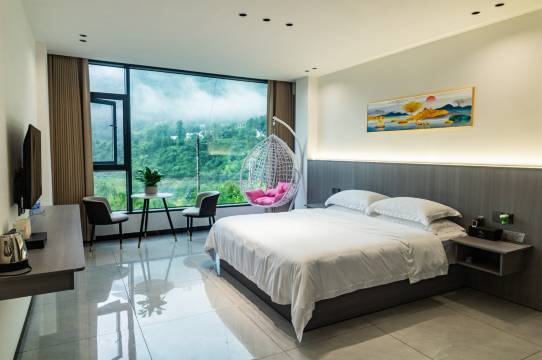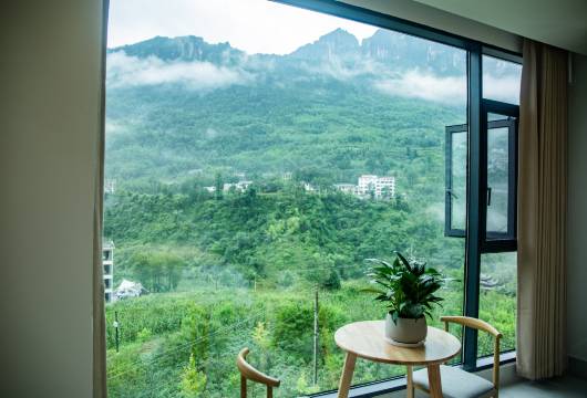 民宿宽敞明亮,干净卫生。坐在落地窗前就能欣赏外面的山景。主要是离景区很近,老板人很好免费接送都景区门口,车程也就五六分钟