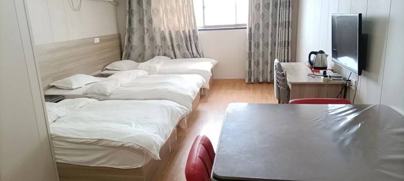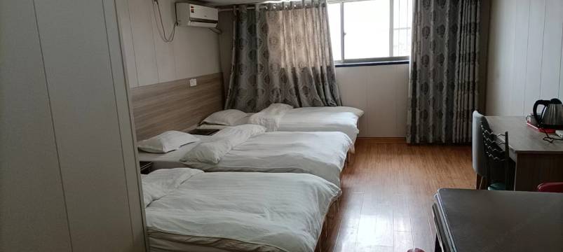 服务态度比较热情。发现房间有蚊子后告知老板,老板很积极的帮我找蚊香液,可惜因为未到蚊子大量出没的时候,只暂时找到蚊香盘;因为来的晚了,大床房已被定完,老板便给了我双床房,算是升级房型;虽然没有窗户,但是排气扇来改善房间空气,缺点是噪音有点大,睡觉要关掉;房间没有钥匙和房卡,但对于不需要出门只睡觉的人来说,不是问题;房间相对于价格来说还是比较宽敞的,算得上物美价廉。