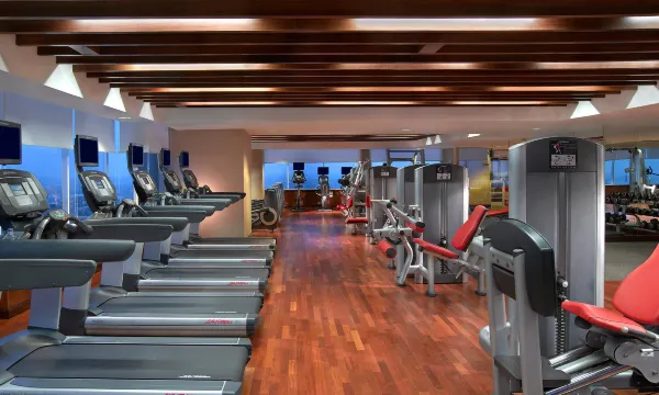 酒店设施完善,健身房游泳池瑜伽馆都有,位于市中心交通便利,附近很多好吃的餐馆,服务人员热情礼貌,符合五星级的标准
