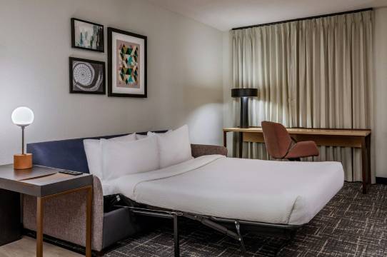 有 122 间客房提供备有大冰箱和炉灶的厨房;您定能在旅途中找到家的舒适。免费提供有线和无线上网;带有有线频道的平板电视可满足您的娱乐需求。便利设施包括书桌和独立的起居区;而且每天提供客房服务。