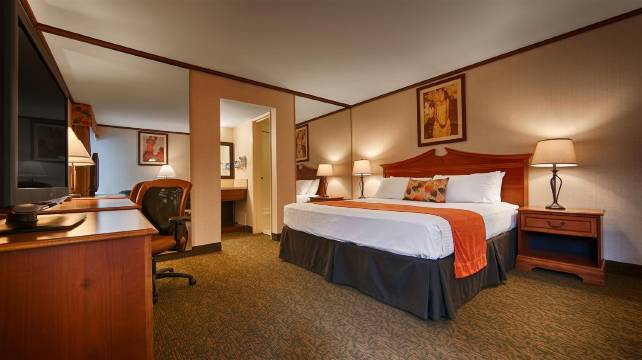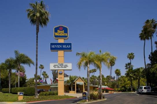 这家提供全套服务的加利福尼亚州圣地亚哥的酒店拥有舒适的客房,方便前往当地各个旅游景点,例如圣地亚哥动物园、中途岛号航空母舰博物馆、圣地亚哥会议中心和海洋世界®。Best Western Seven Seas 酒店坐落在圣地亚哥使命谷的中心位置,是西海岸**的 Best Western 酒店,有超过 300 间客房,占地 12 英亩。 无论您是商务旅行还是休闲度假,加利福尼亚南部的这家酒店的全体员工都愿意用热情周道的服务为您打造一次愉快的住宿体验。 酒店的客人将临近美丽的加州海滩,以及各种世界一流的商店和餐馆,步行即可前往。每间客房均配有冰箱、有线卫星电视和高速互联网接入。 其他酒店设施包括室外温水泳池、池畔健身室、乒乓球台,以及会议/宴会设施,最多可容纳 100 人。Best Western Seven Seas 酒店位于 18 洞 Riverwalk 高尔夫球场附近,距离时尚谷购物中心不到一英里,该购物中心汇聚适合不同消费水平的各种商店。 与你的家人悠闲地徜徉于圣地牙哥动物园(San Diego Zoo)、海洋世界(SeaWorld®)或游览巴尔波亚公园(Balboa Park)的博物馆,度过美好的一天。 附近的其他景点包括:沛可公园、老城、海港村、中途岛航空母舰博物馆、米逊谷购物中心,还有几英里长的美丽海岸线。 该地区也有一些大学,包括圣地亚哥大学、圣地亚哥州立大学、波音特洛玛基督大学和加州大学圣地亚哥分校。 另外,许多医院就在山上。立即预订 Best Western Seven Seas 酒店,立即享受优惠!政府标准包含:工作日的自助早餐、工作日饮料、工作日自助晚餐。 (有条件限制) 每天政府官员/军人持官方证件方可生效。 每间客房只允许一位客人入住。
