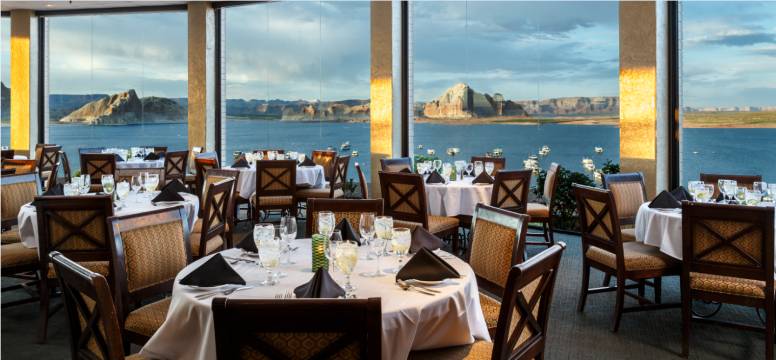 酒店位置很好,能看到鲍威尔湖的美景。自助早餐每人25美元。