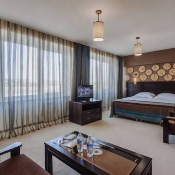 整个酒店布局和房间是老式斯大林时期的风格建筑,我们住顶层城市景房间可以鸟瞰伊市全景,面积略小带浴缸,但早餐丰富,到伊尔库兹克的游览线“绿线”很近,出酒店就到河边开始延游览线citywalk就可以。到火车站和飞机场也很方便