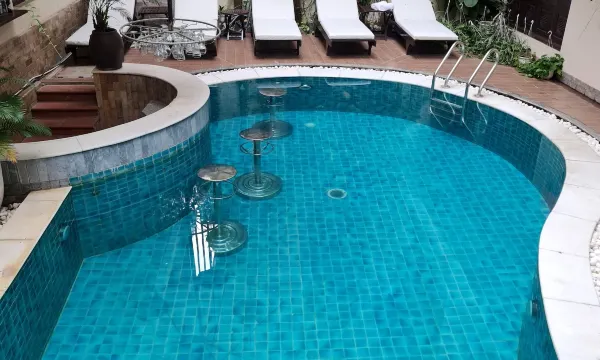 泳池无想像中咁大,而且要正正日头,先会有阳光晒到落池!