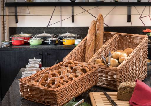 您可以到服务慕尼黑机场温德姆华美达酒店住客的小吃吧/熟食店随便找点吃的。自助式早餐(收费)供应时间为:周一至周五 06:00 至 10:00,周末 06:00 至 10:30。