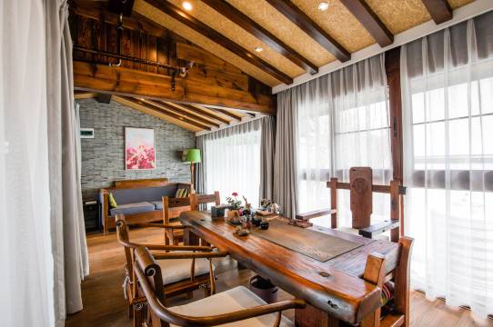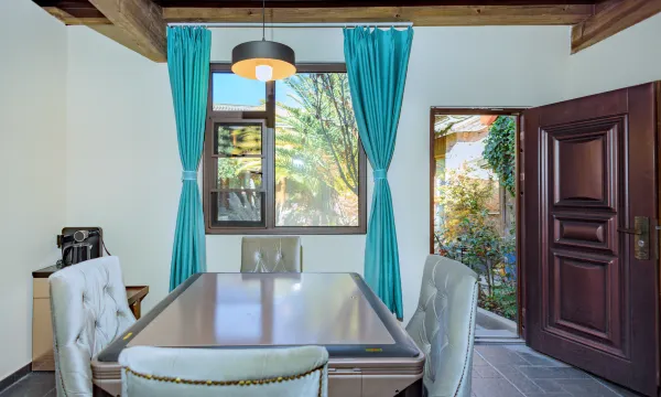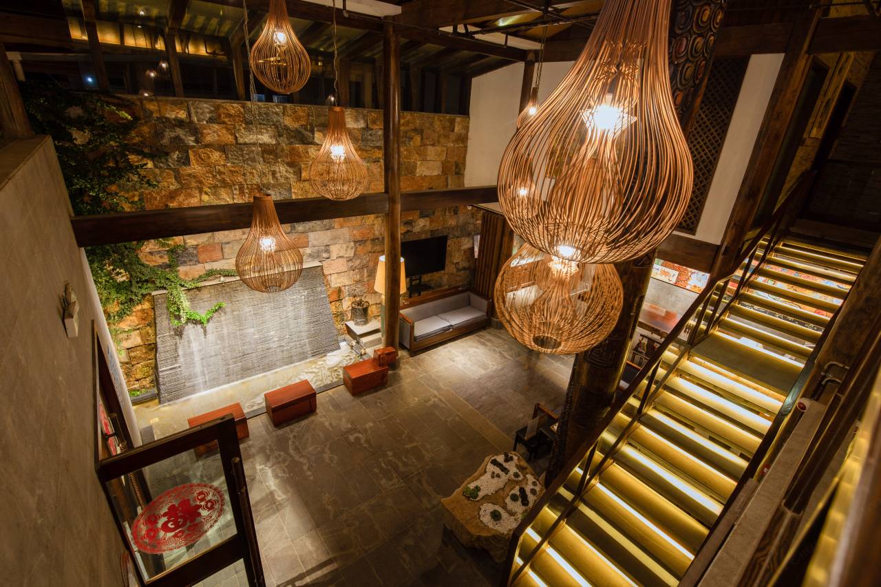 位置不错,在古镇北门进入中心的必经之路上。院落有纵深,客房距离主干道不近,十分幽静。房间布置精致,地暖设计、选品都让人满意。坐在阳台上看着晚霞,难得和孩子们一起安静下来放空。美中不足是房间内灯光稍微偏暗一些。