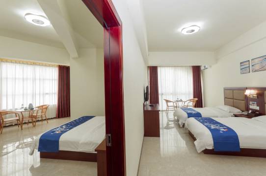 东兴市万尾城市热恋海景酒店是一家集住宿、餐饮、休闲、度假、会务型海滨度假酒店,适合接待前来金滩海边度假的家庭,商务人士,情侣,候鸟老人等宾客群体。酒店总共有各类房间标准单人房和双人房,海景双人房,标准三人套房,海景三人套房等5种房型共95间。酒店配套有自助厨房、餐厅、会议室、棋牌室等,适合家庭和个人自助下厨、团队用餐及会议、候鸟团老人接待等等。酒店周边有宽敞停车场方便停车,酒店房间配套有免费独立wifi和40寸电视、冷热水供应、冷暖空调、免费矿泉水等。酒店距离海边仅200米,新海鲜市场200米。