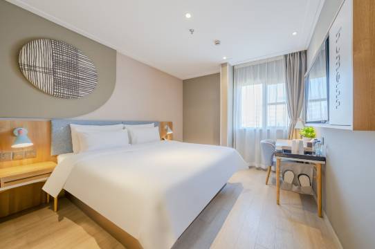 酒店清新淡雅的现代设计,整体呈半开放式的功能布局,在有限的设计空间内,恰到好处满足了商务客人对于舒适,轻松,可靠的住宿体验要求,让您的每一次出行,都充满愉悦的旅程。