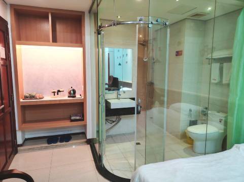 房间舒适干净,卫生间很宽敞,地理位置,交通方便,来琼海住宿的不错选择。推荐