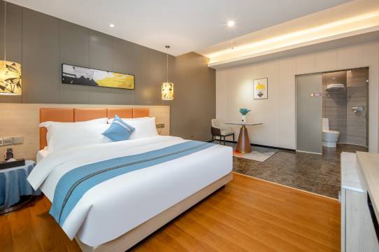前台服务热情还给升级了房型,房间挺干净和宽敞的性价比也高推荐