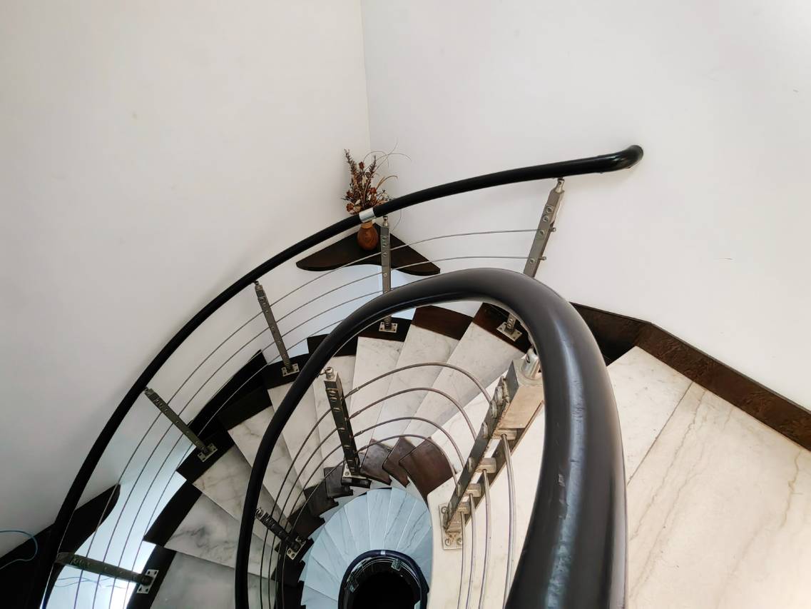上楼是旋转楼梯,二三楼各有三间房,房间内部朝向及有无阳台请看图片,所见即真实。二楼有洗衣机烘干机,在此声明一下:为二三楼的客人提供免费使用。