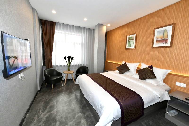 宾馆拥有各类客房可供客人选择,家庭类套房全部配备2张1.8米大床、豪华娱乐棋牌房等!店内所有客房内设宽带上网、空调、24小时热水、旅游咨询等,基础设施齐全。