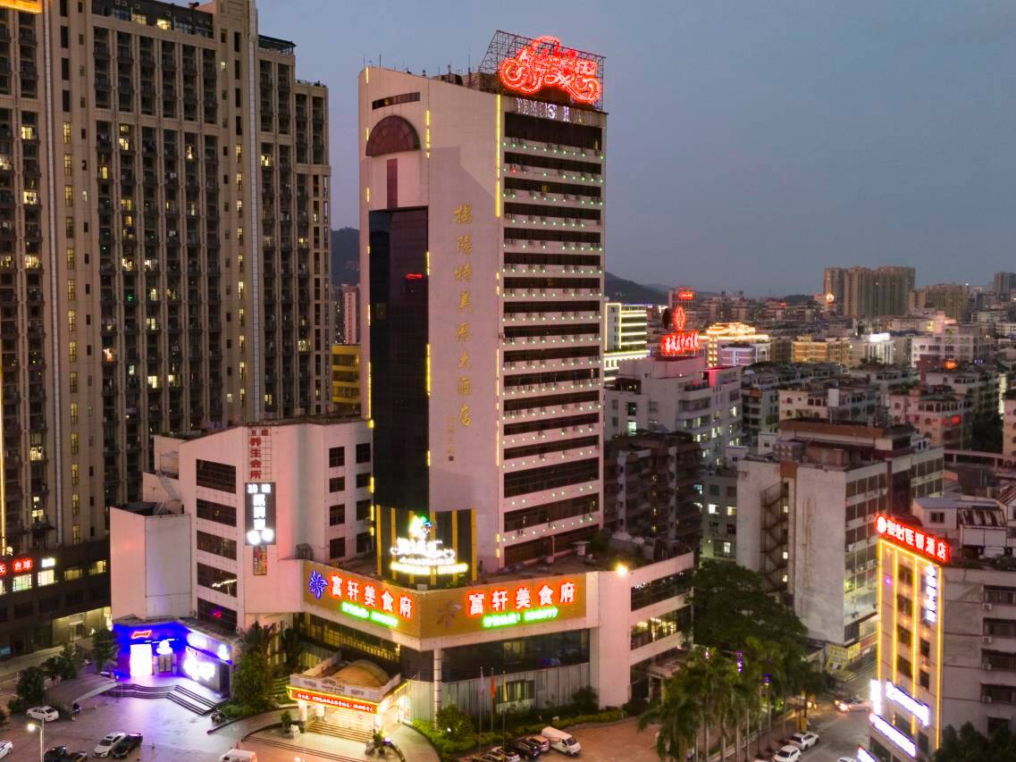 揭阳特美思酒店位于揭阳市东山区——揭阳市最繁华的商业黄金地带,毗邻各式餐饮酒楼及购物商城。距离揭阳火车站仅2.5公里,离揭阳市政府也仅3.4公里,出行便利。