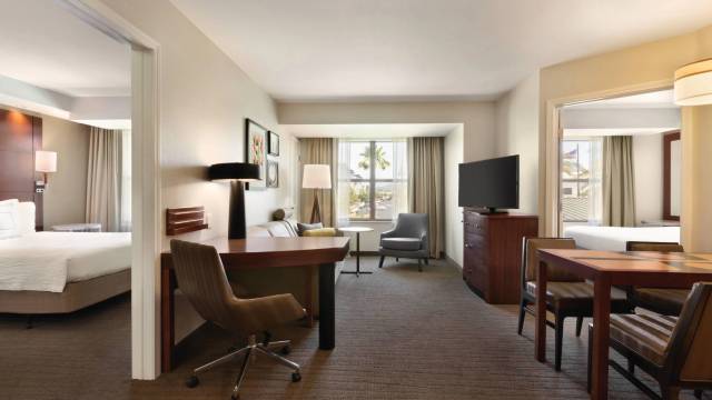 有 112 间客房提供备有大冰箱和炉灶的厨房;您定能在旅途中找到家的舒适。您的卧床备有羽绒被和高档床上用品,且所有客房均提供双人沙发床。提供免费无线网络,方便您与朋友保持联系;有线频道可满足您的娱乐需求。便利设施包括电话,以及书桌和微波炉。