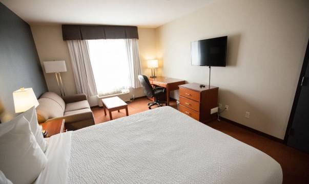 有 59 间客房提供冰箱和微波炉;您定能在旅途中找到家的舒适。您的卧床备有羽绒被和高档床上用品。免费提供有线和无线上网,此外,32 英寸平板电视提供数码频道,可满足您的娱乐需求。配备淋浴/盆浴组合的私人浴室提供免费洗浴用品和吹风机。