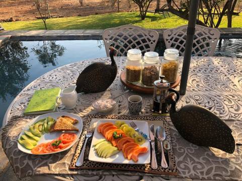 这个地方真的太美了,在泳池边吃早餐就能看到羚羊,疣猪等动物,主人夫妇也很热情,还借给我自行车去游玩。早餐很好吃,房间也很舒服,我度过了美好的五天。