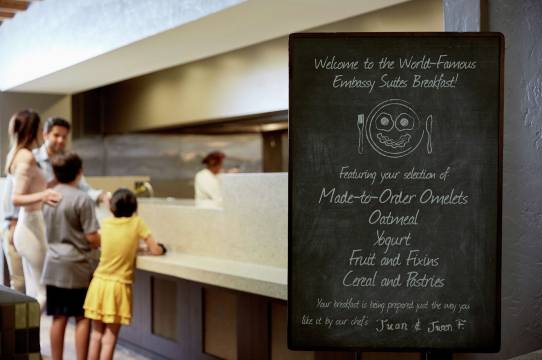 您可以到服务洛杉矶国际机场南/埃尔塞贡多希尔顿大使套房酒店 住客的1440 Bistro & Bar享用美餐;也可以去小吃吧/熟食店逛逛。在忙碌的一天后,不妨去酒吧/酒廊轻松一下。免费自助早餐供应时间为:周一至周五 06:00 至 09:00,周末 07:00 至 10:00。