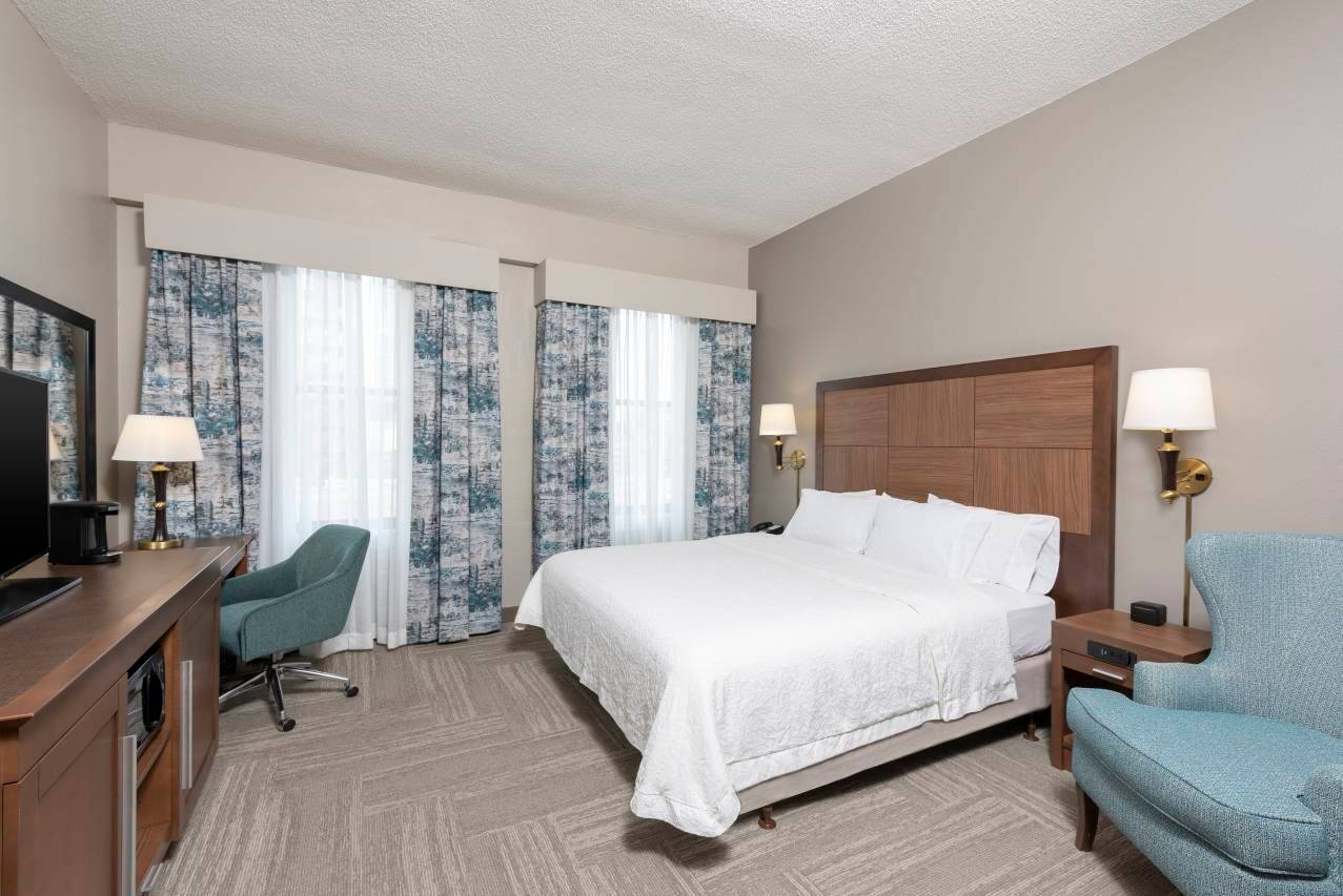 酒店就是标准hampton inn的配置。早餐都是老三样。床和床品都是一样的,品质稳定。房间也比较大。总体满意👍