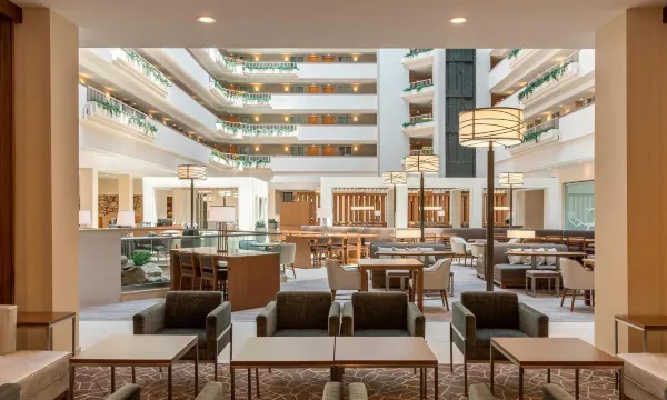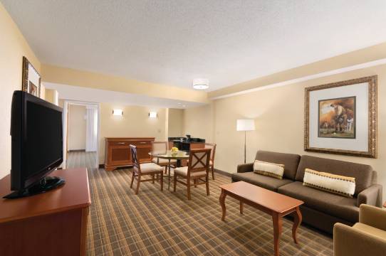 有 268 间空调客房提供冰箱和微波炉;您定能在旅途中找到家的舒适。您的卧床备有高档床上用品,且所有客房均提供双人沙发床。带有有线频道的 37 英寸平板电视可满足您的娱乐需求;同时提供免费有线网络,方便您与朋友保持联系。配备淋浴/盆浴组合的私人浴室提供**洗护用品和吹风机。