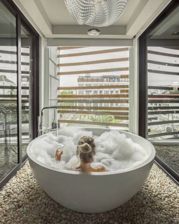房间干湿分离,浴缸也在独立隔间,可以看到窗外景色