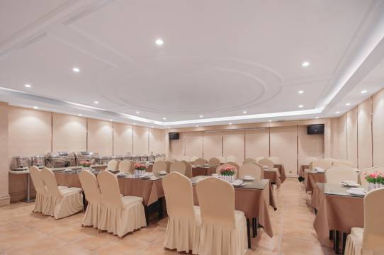 这是一家集客房、餐饮、会议、为一体的欧式风格高档酒店,拥有百余套客房,房内冷暖空调、数字高清电视、24小时热水、独立淋浴间、极速wifi等配套设施一应俱全。