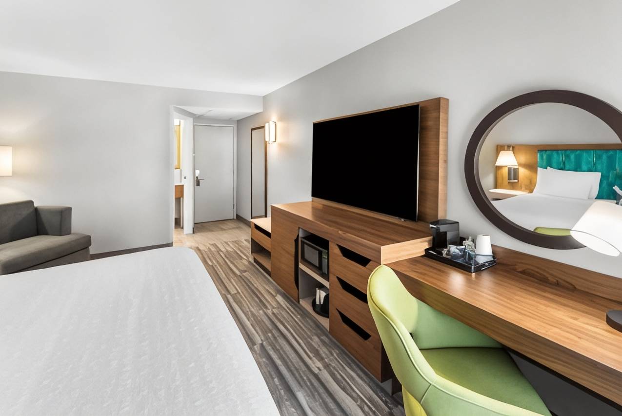有 128 间空调客房提供平板电视;您定能在旅途中找到家的舒适。提供免费有线和无线上网,方便您与朋友保持联系;另提供有线频道,可满足您的娱乐需求。私人浴室提供免费洗浴用品和吹风机。便利设施包括书桌和茶具/咖啡用具,以及带有免费市内通话的电话。