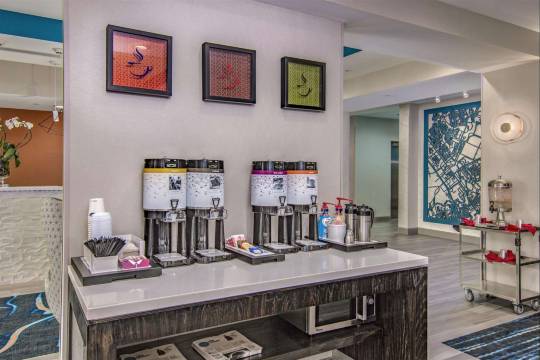 您可以到服务休斯顿 NASA 约翰逊航天中心欢朋酒店住客的小吃吧/熟食店随便找点吃的。免费自助早餐供应时间为:周一至周五 06:00 至 10:00,周末 06:00 至 10:00。