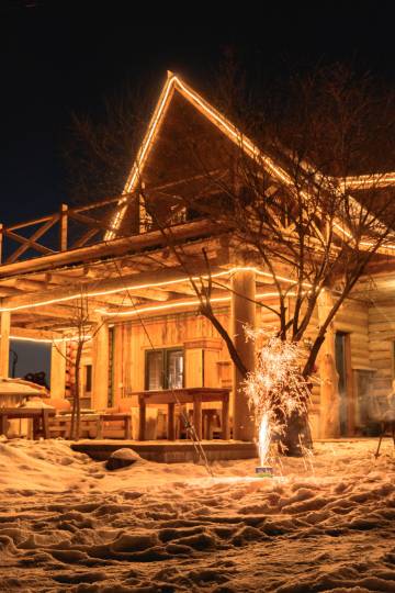 小年夜入住,到得比较晚,前台亲自出来接我们带我们去停车,后来老板还送了我们一盘饺子,饭菜味道也做得很不错,小木屋也很温馨