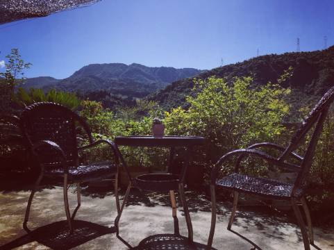 第一个来水磨古镇,住的地方在古镇里面,下个坡就到了游客来往比较多的那条街道。房间在2楼最里边,很安静,楼下是黄色的枇杷,远方是被雾笼罩着的山。