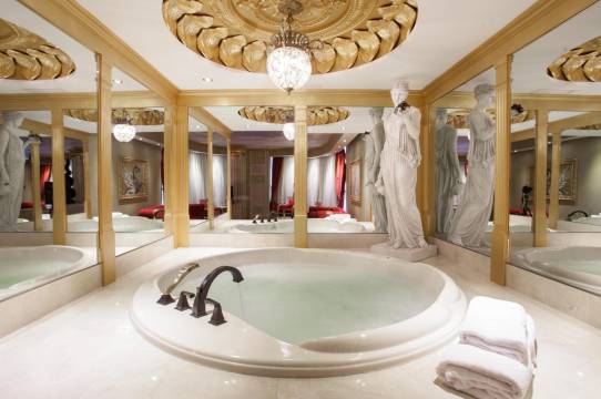 幻想世界装修风格很现代,很昡酷,是一家多样化的主题酒店,里面的房间有罗马假日、波利尼西亚、北极冰雪等多种房型可供选择。所以这家酒店相比之下更适合带娃度假,或者是全家来旅游。
