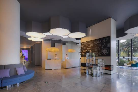 酒店大堂装修新颖前卫,配备舒适大堂吧,提供由法国卢浮酒店团队为您甄选的各式各式葡萄酒、烈酒、鸡尾酒及花式咖啡。酒店餐厅提供中西特色早餐,严选与法国Campanile Holtel 一致的法国可颂面包、巧克力面包及高品质奶酪、牛奶、咖啡等,同时也提供特色淮扬早点,给您活力满满的一天!