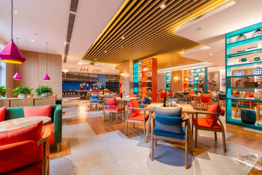 酒店1楼为大堂、书吧、咖啡水吧及商务休息区,4楼为305平米的自助餐厅,可以同时容纳88人吃早餐,5楼至15楼拥有不同规格的客房,满足商旅客人的住宿需求。