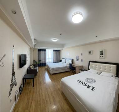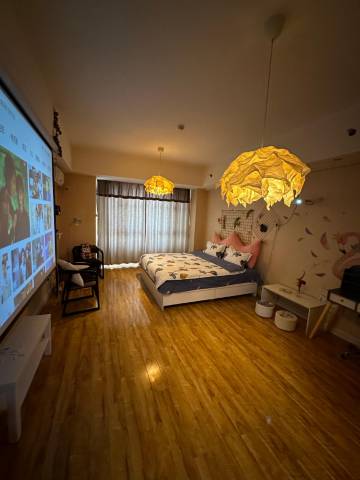 打电话给老板姐姐说住的人多,还想要巨幕,于是美女姐姐给免费升了房,2张1.8米床+巨幕,满足所有需求~床垫很舒服,床品很干净,没有任何异味。地理位置也很好,楼下就是万达,好吃的无数,值得再来