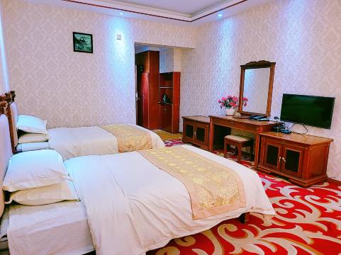 该宾馆有个大广场,停车非常方便,房间宽大舒适卫生,设施设备齐全,周边无居民区,非常宁静,老板态度非常热情,氧气平价售卖,免费提供足够饮用矿泉水。房间里配置吸氧装置。
