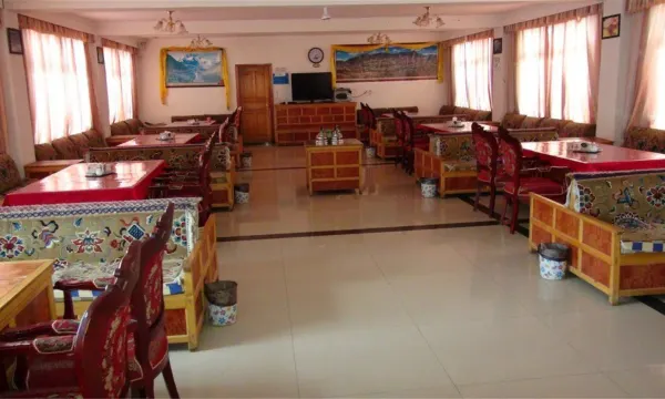 餐厅可同时接待120个人就餐,早餐可提供中、西餐两种;院内还能停放50多辆车,是旅人登山探险,科研者前往珠峰、樟木口岸的安心居所。