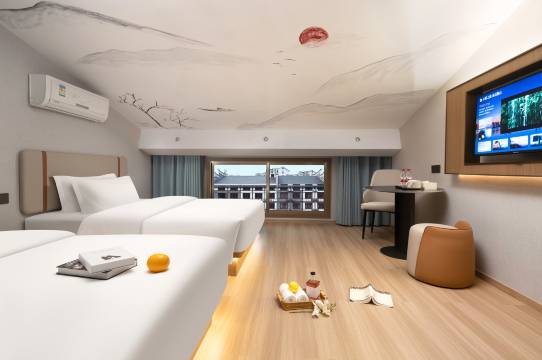 跟朋友出来玩预订的这家酒店,没想到挺惊喜的,房间里是2张1.5米的床,设施齐全,前台服务热情。一楼吃饭停车都很方便,去景区酒店也有车可以免费接送,晚上还去南岳里看了节目,挺舒心的一次出游。