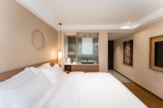房间有不同的规格,越贵的装修就越好,卫生环境干净,然后交通方便,距离洛邑古城地铁站c出口只有几十米,而且C出口还有上下手扶梯,方便旅居出行,附近吃的东西也很多,水席选择很多